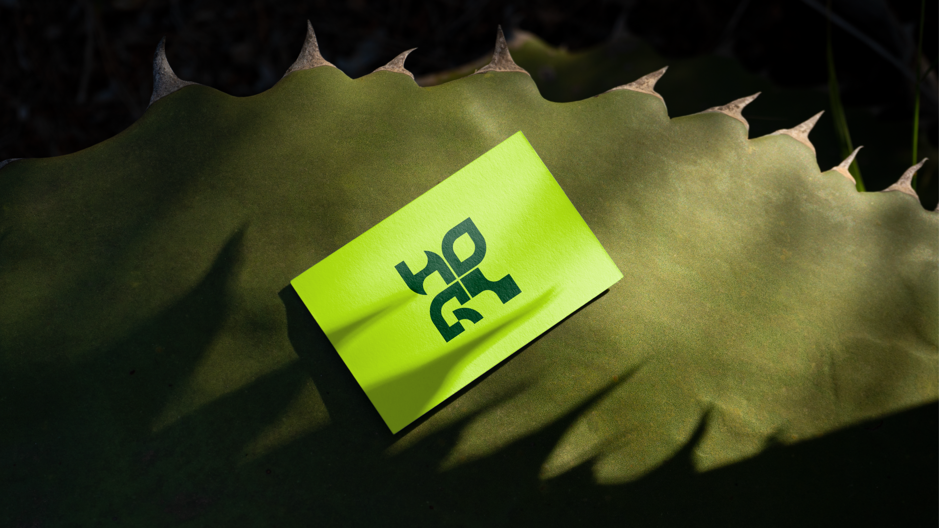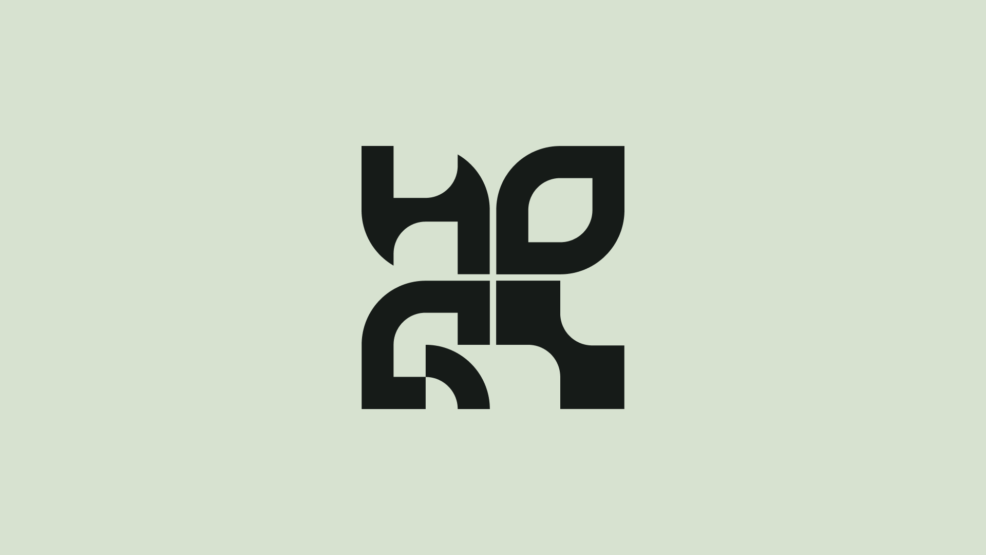 Nous avons conçu un système visuel propriétaire : quatre formes organiques qui s'emboîtent pour former le nom HORI.